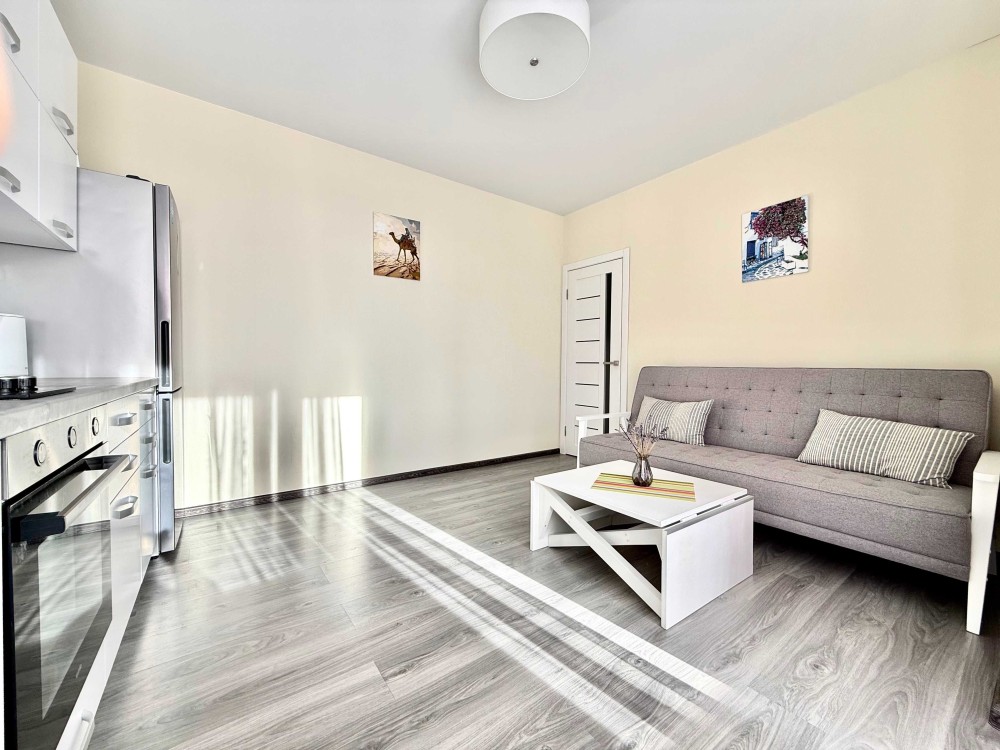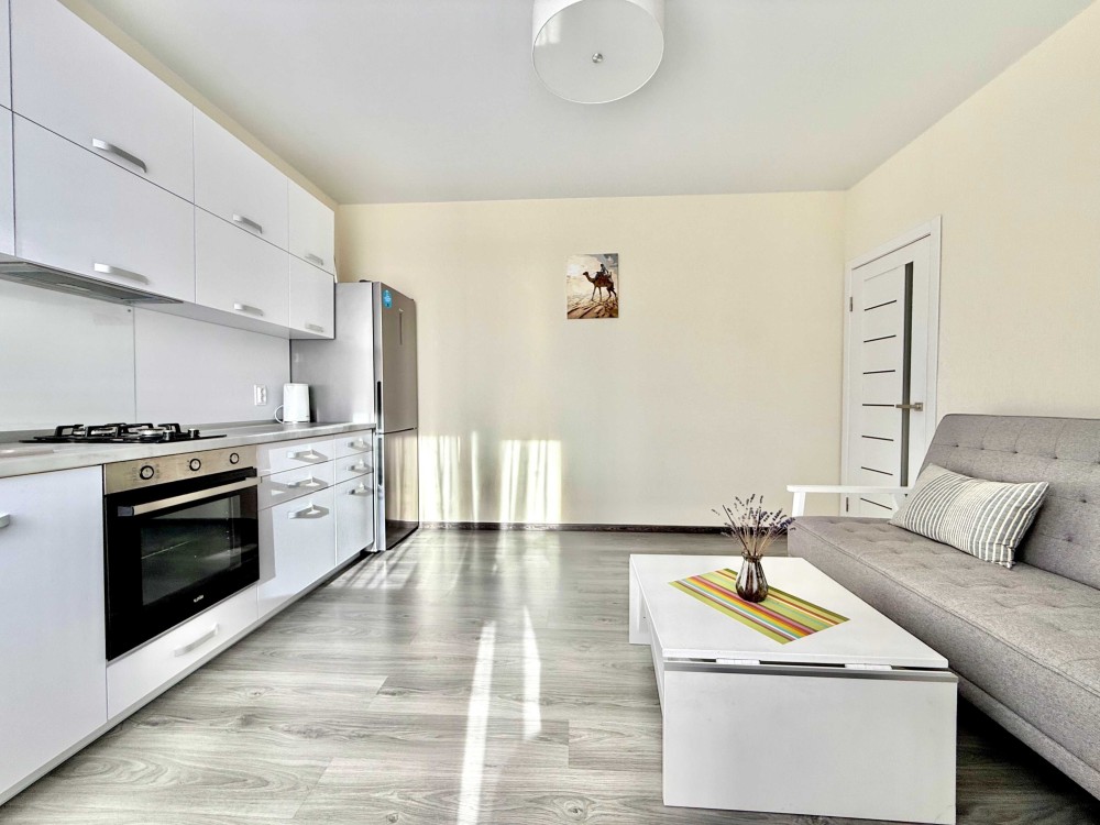 Квартира має окрему спальню, кухню-студію та дві лоджії — з кухні та зі спальні. Продумане планування робить її зручною як для пари чи молодої сім’ї, так і для людей, які цінують тишу, простір і комфорт.