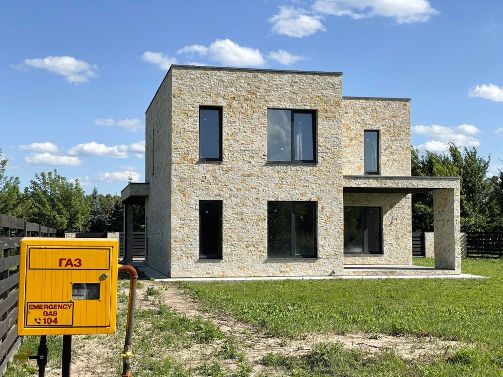 Якісний, повністю готовий до чистового оздоблення будинок, виконаний за європейською, дорогою, екологічно чистою технологією Hempcrete. Фундамент - залізобетонний, пальоворостверковий, глибиною залягання 6м. Сейсмостійкість - 8 балів по шкалі Ріхтера. Будинок успішно перезимував і не дав жодної тріщини. Сухий, теплий, чистий, енергоефективний. Оздоблення фасаду каменем та деревом, панорамні вікна Veka, розведення теплих підлог, опалення, сантехніки та електрики по будинку. Товсті внутрішні стіни і перекриття забезпечують чудову звукоізоляцію кімнат.