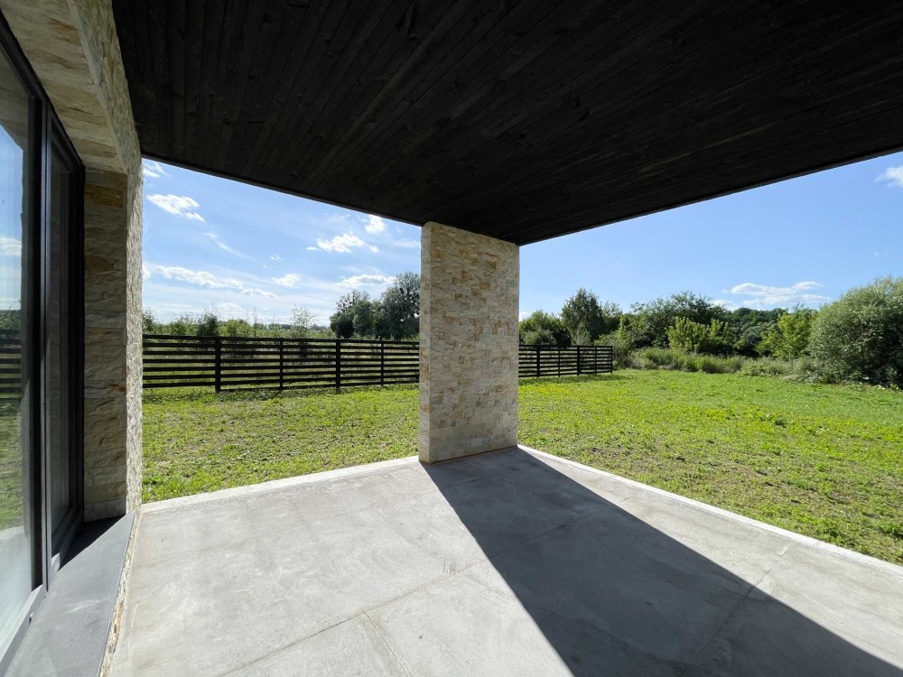 Гарний проект, зручне та просторе планування. Велика кухня-столова, вітальня з виходом на криту терасу, 3 спальні, вихід на власну терасу з господарської спальні, 2 санвузли, вбиральня, пральна, тех-приміщення, навіс для авто, автоматичні ворота.