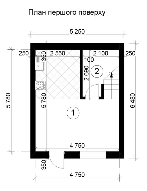 Площа пропонованого таунхауса 56 м2