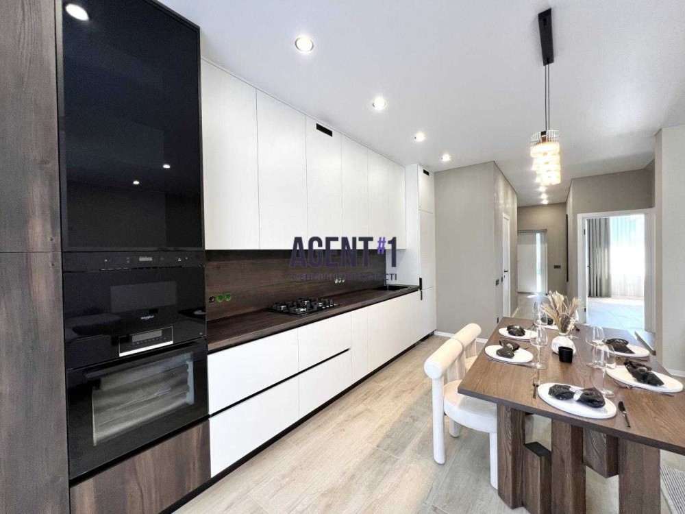 - вбудована кухня з технікою (посудомийна машина, газова варильна поверхність, мікрохвильова піч, духова шафа, холодильник);