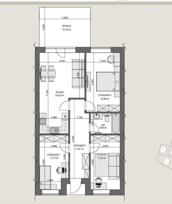 • Трикімнатна