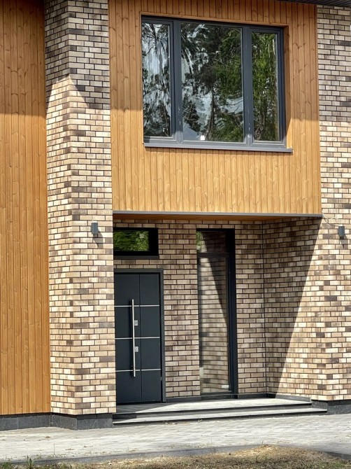 фасад - клинкерная плитка (Германия), природный камень;