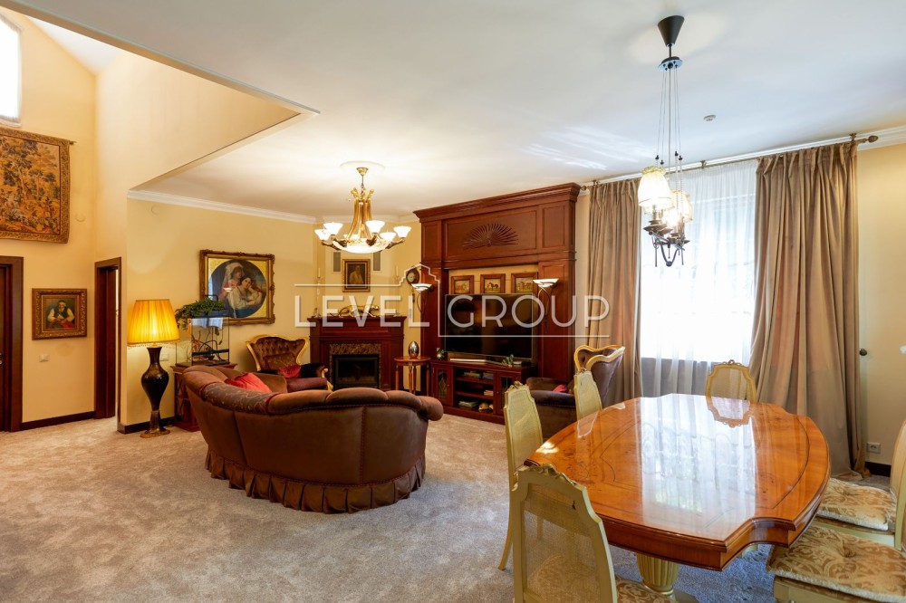 Гостьова з каміном, кухня, повністю облаштована технікою, кладова з додатковими холодильниками (винний і загальний), 4 кімнати, кімната для няні або прибиральниці, 3 санвузли, веранда, кімнати-гардеробні, технічна-постирочна.
