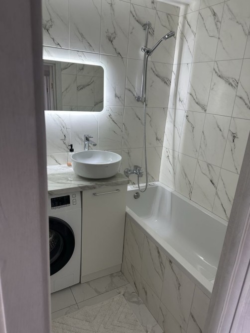 Из мебели есть двухспальный диван, кресло, стол, стулья, шкаф и все необходимое. Из бытовой техники есть большой холодильник, телевизор, стиральная машинка. Квартира теплая зимой. Горячая и холодная вода круглосуточно. Есть интернет.