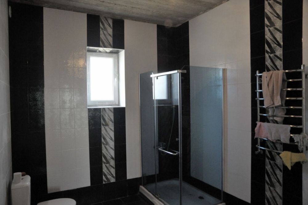 Дом в трех уровнях, два санузла облицованы современной плиткой, Установлена импортная сантехника.