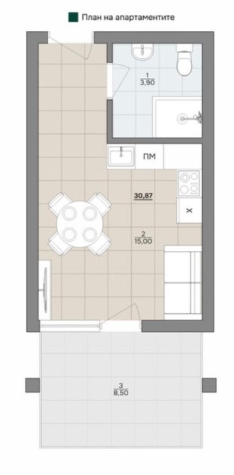 • Загальна площа 30.87 м2