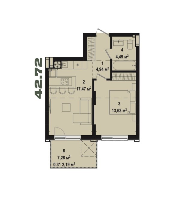 • Загальна площа 43 м2