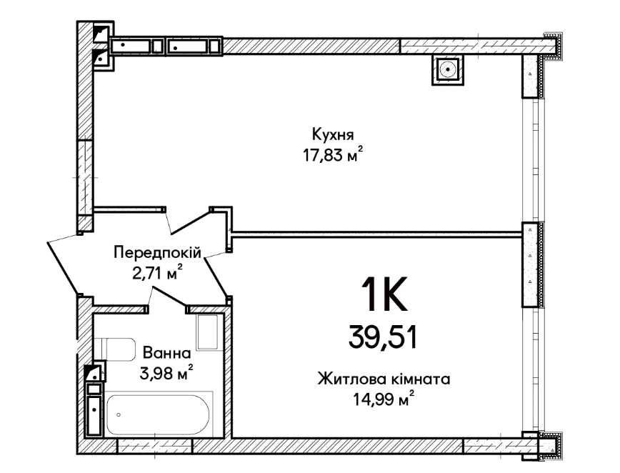 • Загальна площа 39.51 м2