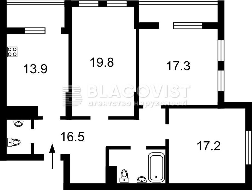 • Площа кухні 13.9 м2