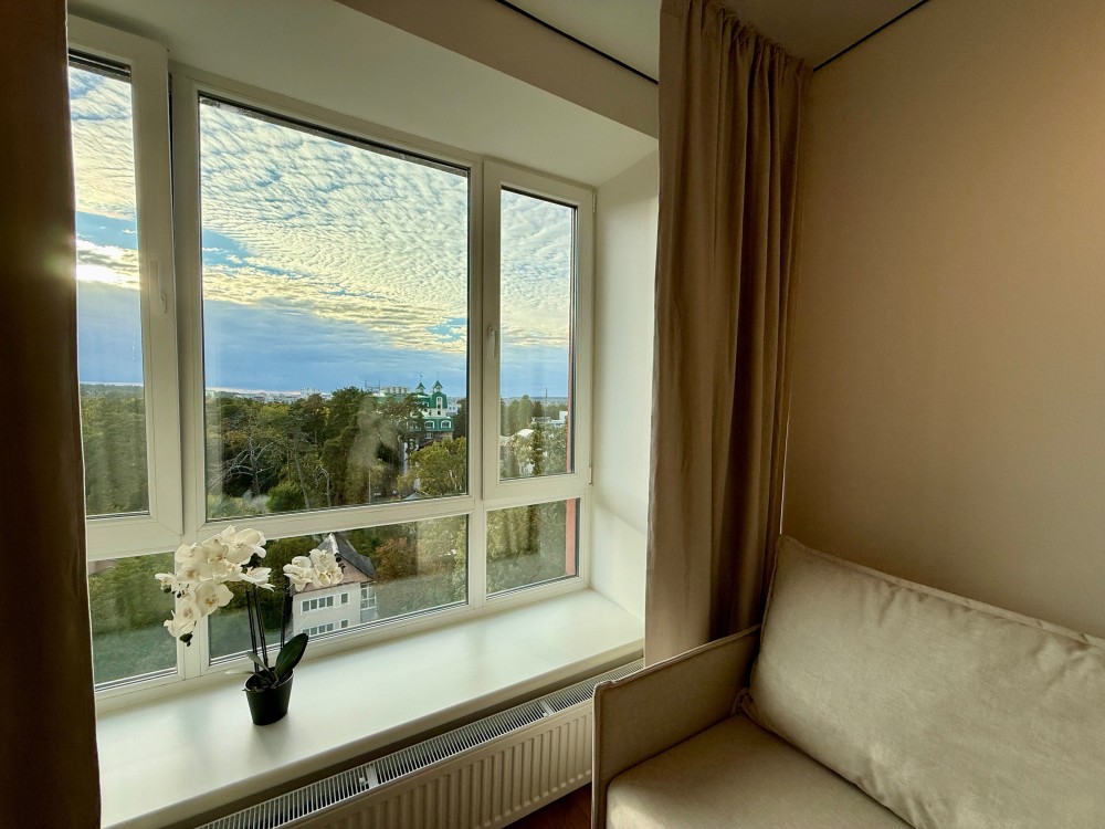 ЖК розташований серед невисоких будівель, оточений соснами