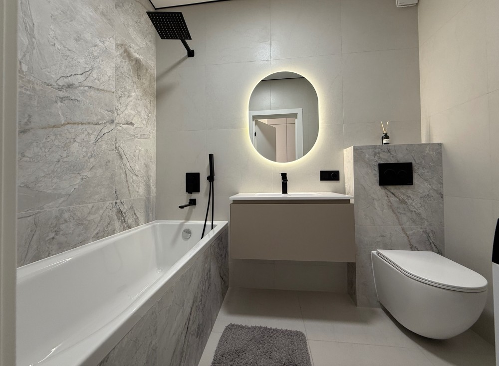 повнорозмірна окрема ванна, тепла підлога, пральна машина Beko