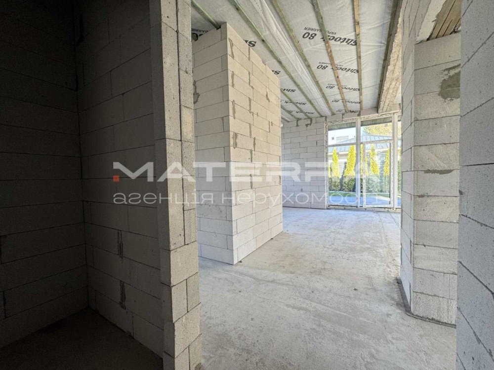Планування: три кімнати, студія з панорамними вікнами та виходом на терасу, гардеробна, два санвузли, котельня, передпокій