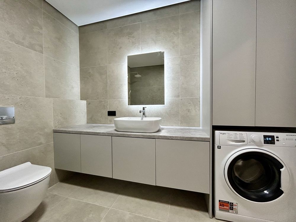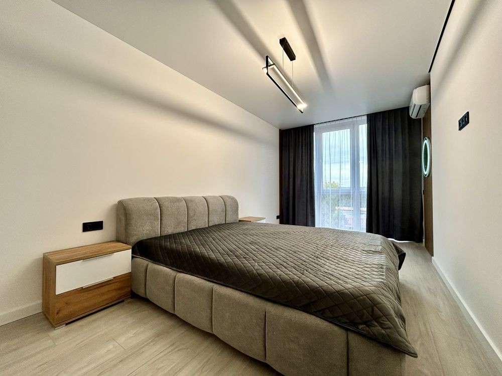 Функціональне планування: простора укомплектована кухня є: холодильник, посудомийка, мікрохвильовка, духовка та розкладний обідній стіл. Окрема спальня кімната із кондиціонером, двоспальним ліжком, б юті зоною та є місце ще під робочий стіл та шафу. Окрема гардеробна. Великий суміжний санвузол із ванною, пральня машинка, бойлер, рушникосушка, інсталяція та рукомийник із дзеркалом з підсвіткою.