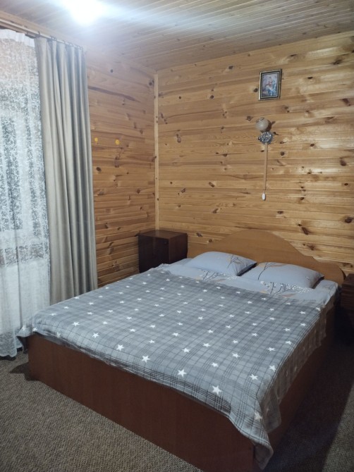 Якщо проживання більше 10 днів- ціна договірна.На першому поверсі хол ,кухня з обігрівом підлоги , спальня, сан вузол .На другому поверсі хол ,три спальні ,сан вузол,вихід на балкон .Швидкісний Інтернет, телевізор,скважина,генератор.Знаходимось в Івано-Франківській обл.смт Микуличин -200метрів від центру,поблизу річка,та ліс,супермаркет Таврія