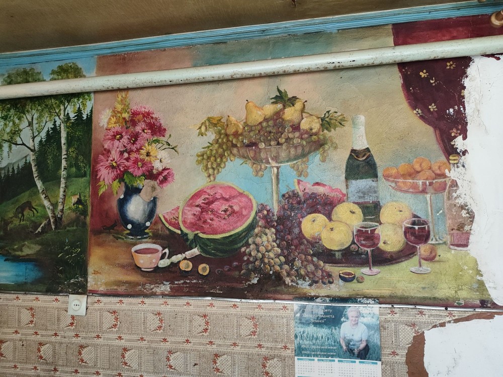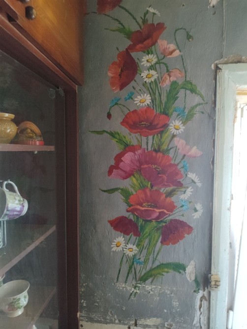Для пошановувачів мистецтва є приємна родзинку - стіни вітальні розмальовані оригінальними авторським малюнками ручної роботи, маслом на штукатурці. Це надає будинку унікальність і фантазію для подальшої обробки стін.