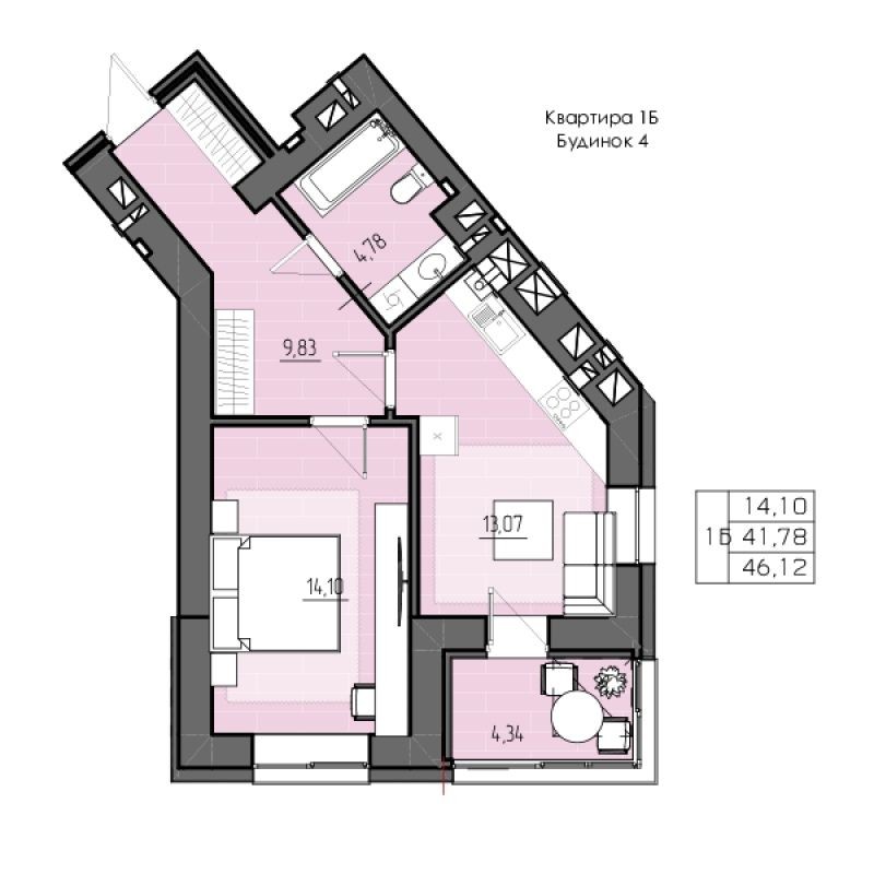 • Загальна площа 46 м2