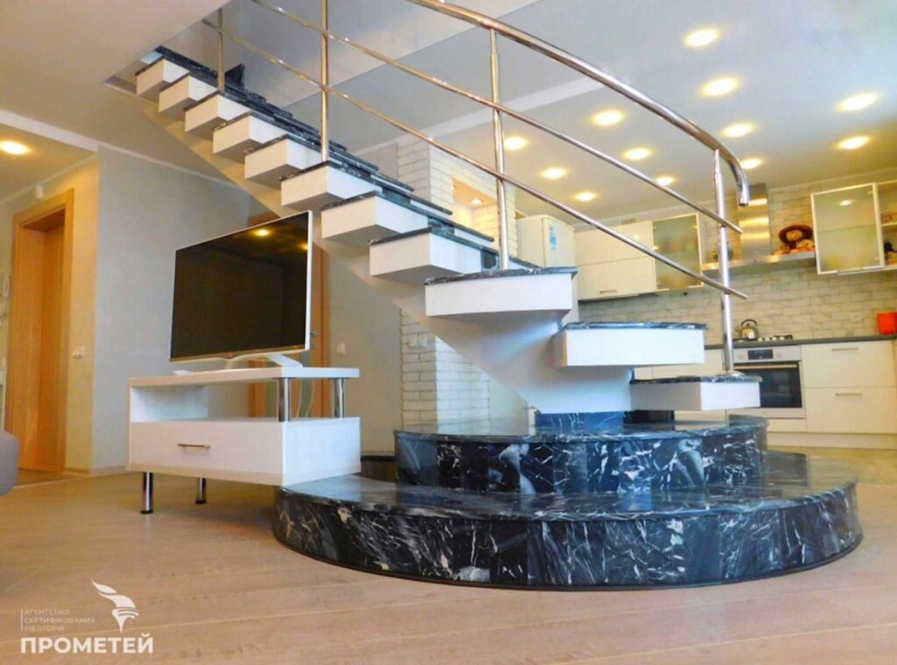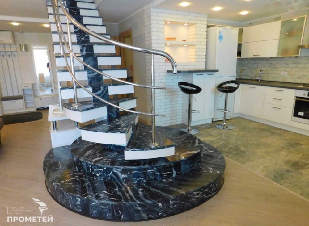 Однією з головних деталей у дизайні інтер'єру квартири є сходи з натурального мармуру.