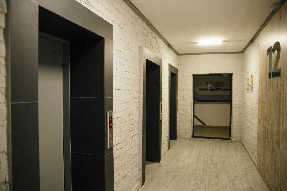 Квартира розташована на видових, 13-му і 14-му поверхах, у будинку функціонує пасажирський і вантажний ліфт.