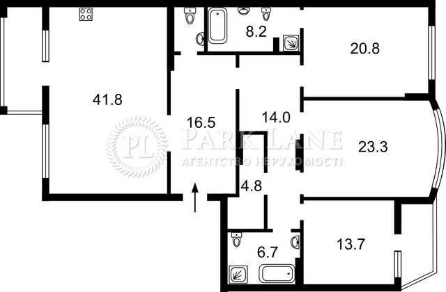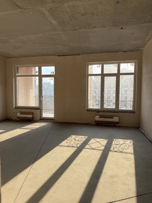 Загальна площа 155 метрів квадратних. Висота стель 3,2 метри. Раціональне планування, великі кімнати правильної форми, великі якісні вікна, просторі балкони. Кухня-вітальня 41,8 метрів квадратних та три окремі кімнати. Стан квартири після будівельників. Монолітно-каркасна технологія будівництва, стіни - червона цегла, утеплення - базальтова вата. Автономна система тепло, енерго та водопостачання.