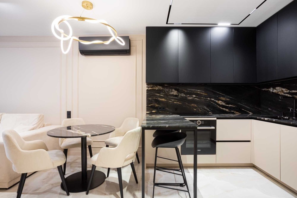 - фасади кухні МДФ в комбінації з ДСП, фурнітура Blum всюди;