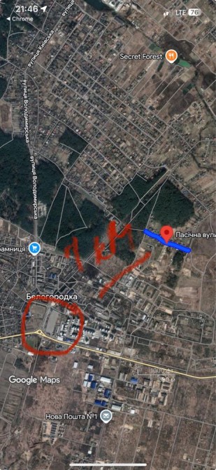 Будинок знаходиться біля соснового лісу та 5хв до центру Білогородки по вул. Пасічна