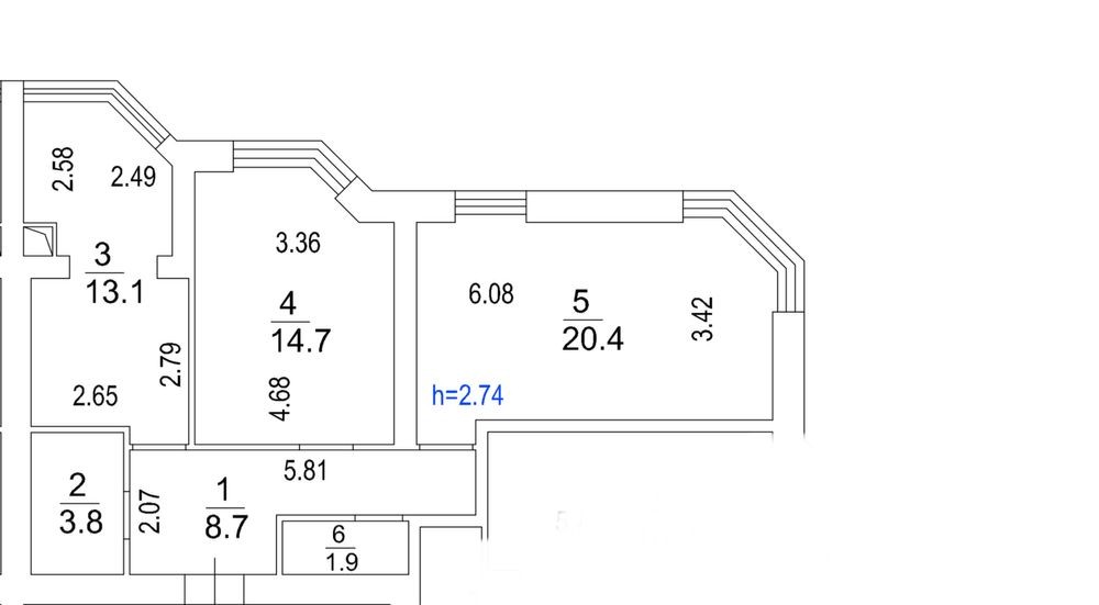 • Площа: 62,1 м²