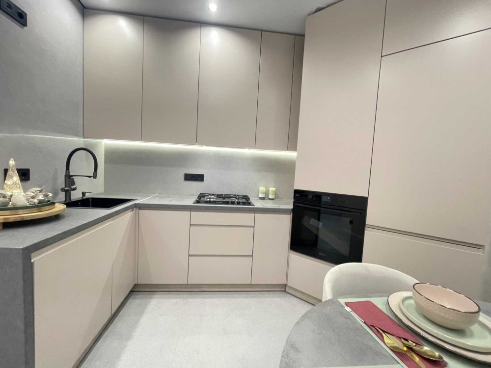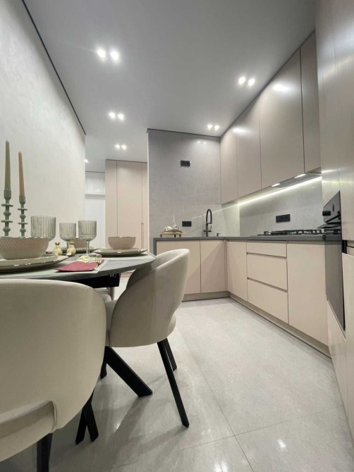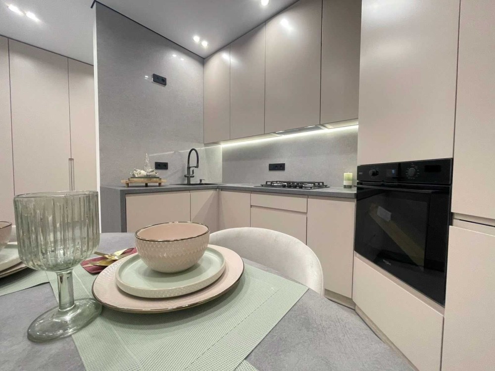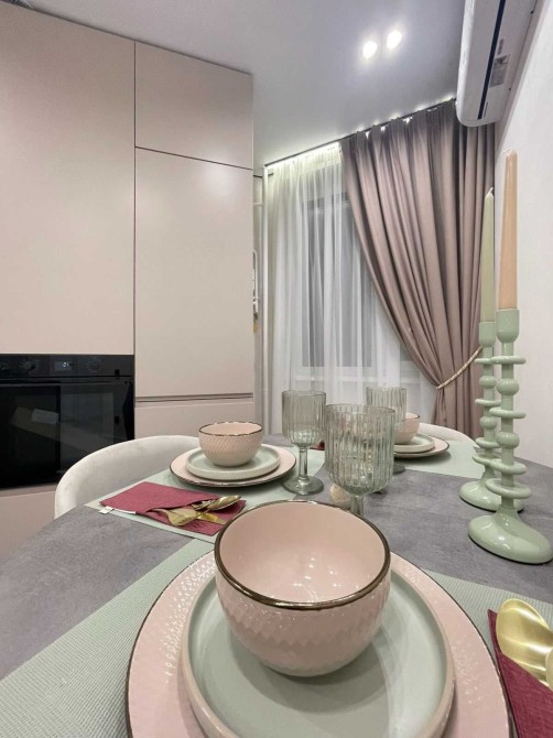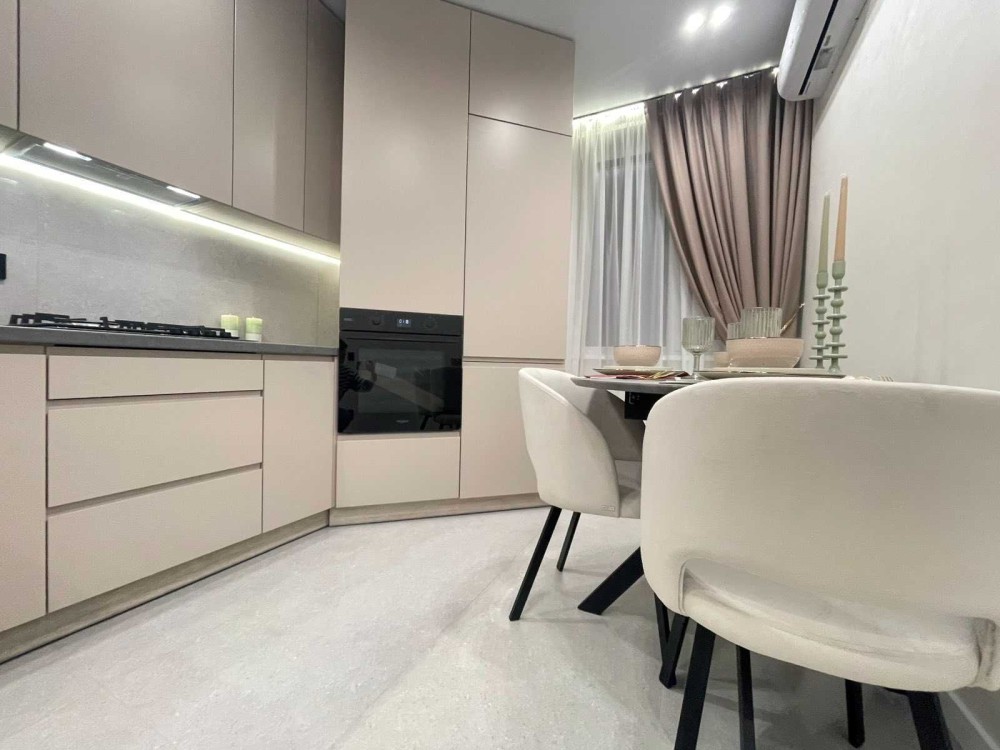 - Розкішна кухня , укомплектована меблями та вбудованою побутовою технікою, обідньою зоною, встановлено кондиціонер.