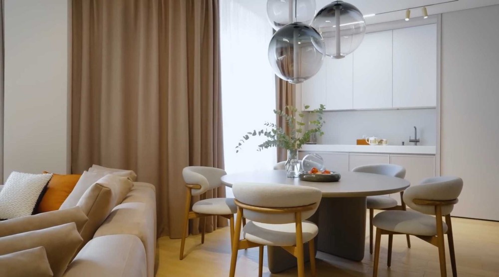 Квартира має роздільне планування з гостьовим санвузлом, основним санвузлом і великою гардеробною. кухня-вітальня, об"єднана в єдиний простір. Всі шафи вбудовані. Виконано авторський проект дизайнерського ремонту з використанням натуральних та екологічно чистих матеріалів.