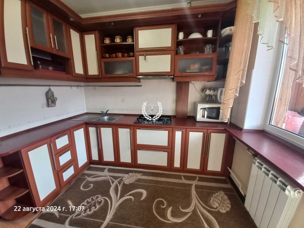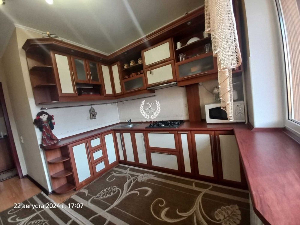 Велика кухня 10,5м2, залишаеться вся техніка та меблі, вихід на лоджію з кухні.