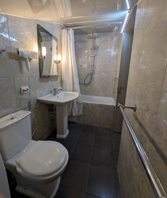 Суміщений санвузол облицьований плиткою, ванна, душова стійка, умивальник із дзеркалом та підсвіткою, унітаз. Усе в чудовому стані.