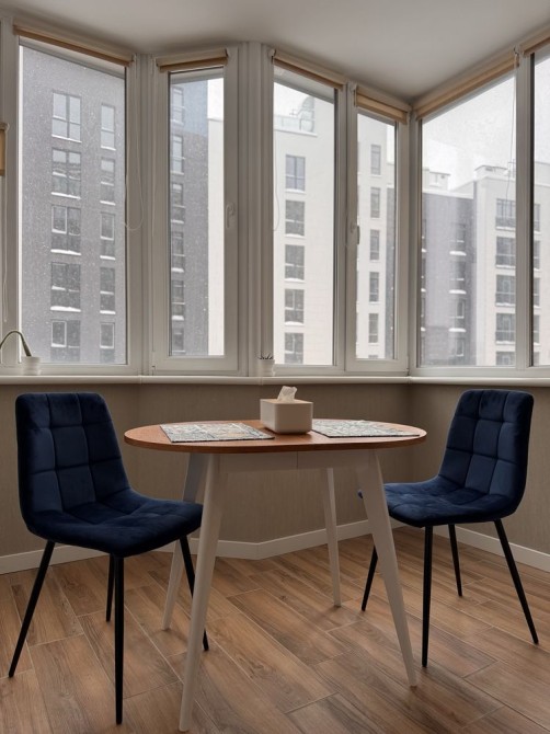 Квартира формату - євродвійка. Має окрему спальню з лоджією та кухню-вітальню.