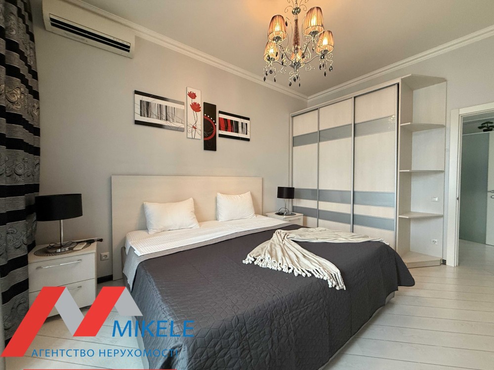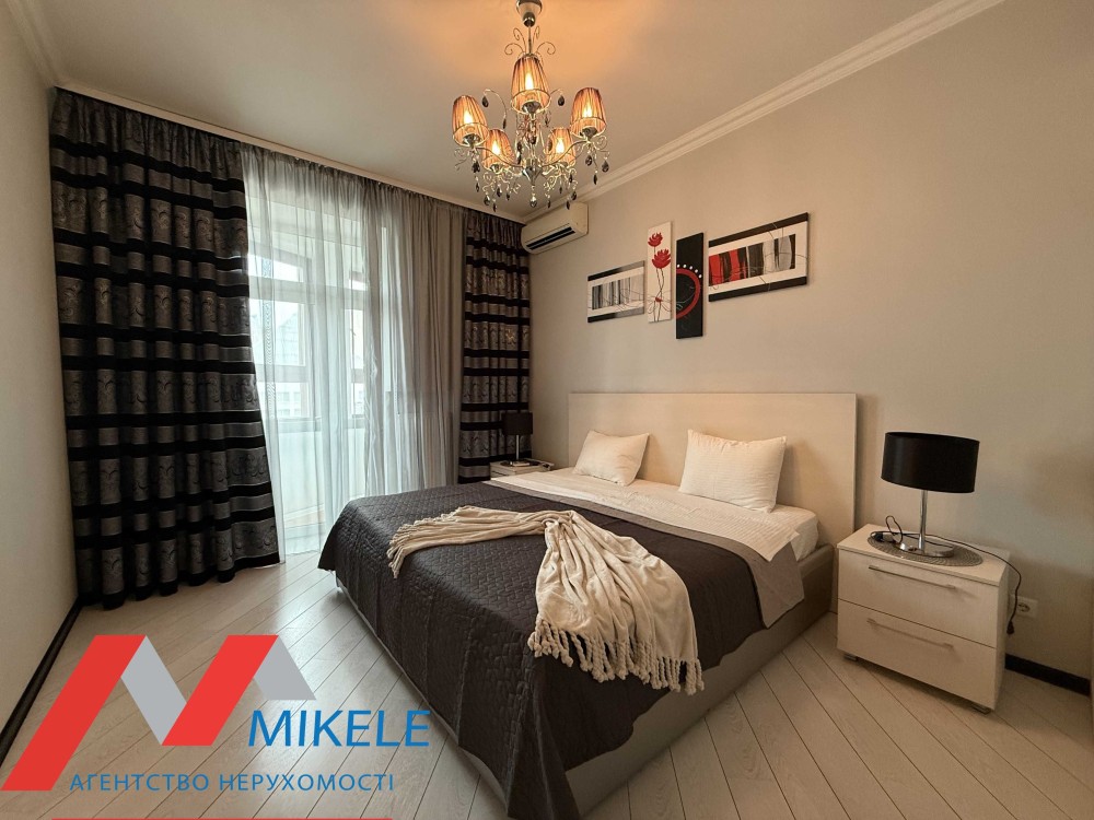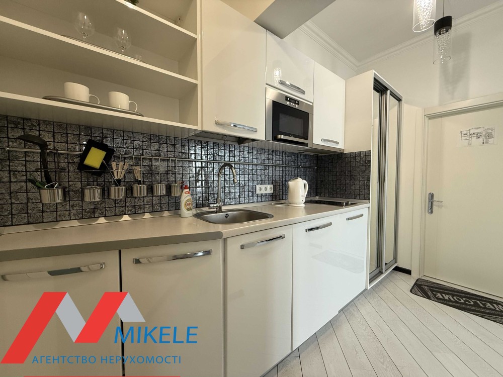 Квартира знаходиться на 4-му поверсі, з просторою окремою кімнатою з виходом на балкон, гостьовою - зонованою на: невеличкий кухоний куток та гостьову зону з диваном, сумісний санвузол з ваною. Квартира обладнана усією меблею та побутовою технікою.