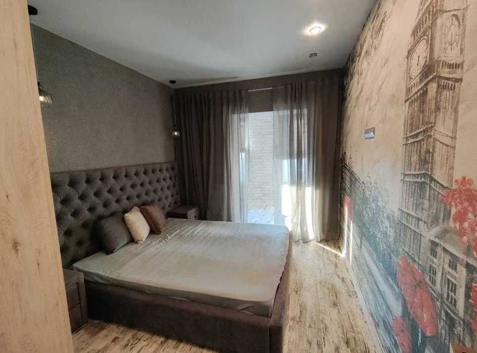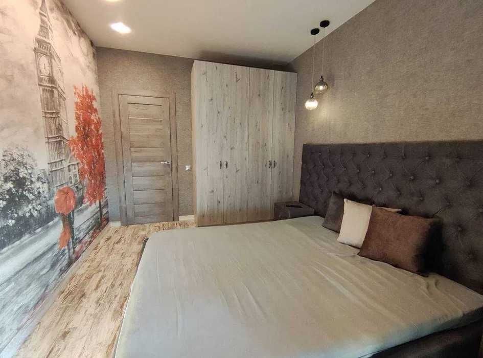 Отличный современный ремонт. Кровать двуспальная, диван гостевой, встроенная кухня с бытовой техникой.