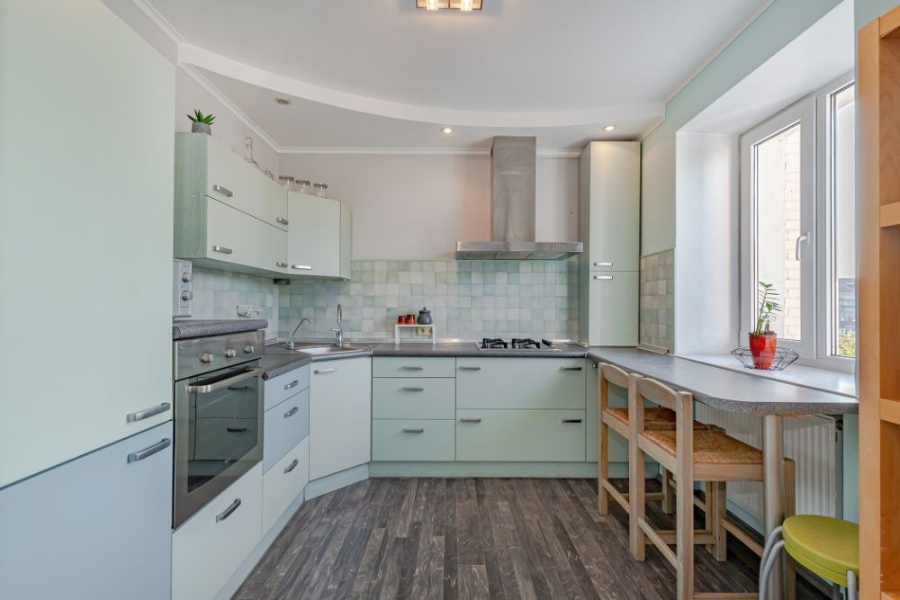 Юрковская, 28 Аренда квартиры в фасадном доме в центре Подола с закрытым двором, где могут парковать свои автомобили жители дома. Метро Тараса Шевченко в 7 минутах от дома. Во дворе есть детская площадка. Подъезд чистый, закрывается на ключ. Квартира расположена на 5 этаже /7-этажного дома с лифтом. Общая площадь квартиры 75 кв.м., кухня - студия, спальня, детская, раздельный с/у и застекленный балкон. Квартира меблирована, ремонт сделан в нейтральном современном стиле.