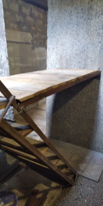 В подвале стилаж для работ под машиной, разборный.
