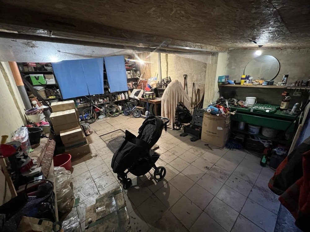 Есть свет, яма и отдельно хороший погреб(показал на фото) с полочками под консервацию. Можно закупить овоща летом по низким ценам, хранить тот же картофель, морковь, и использовать зимой когда цены выше в несколько раз.