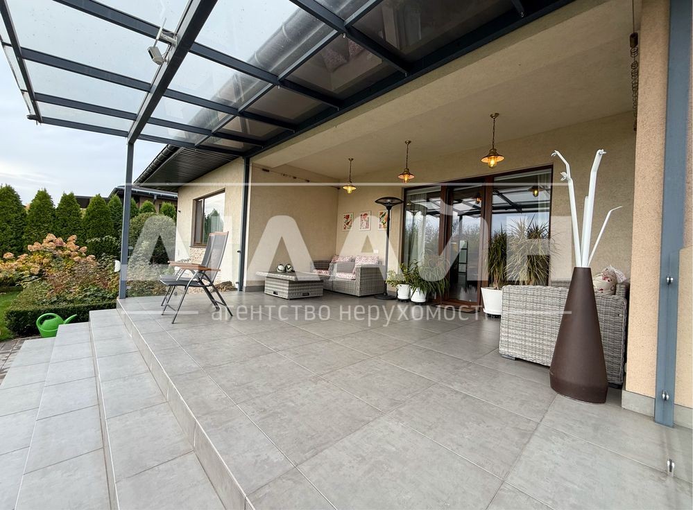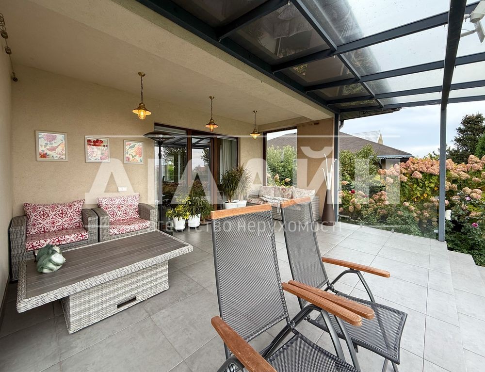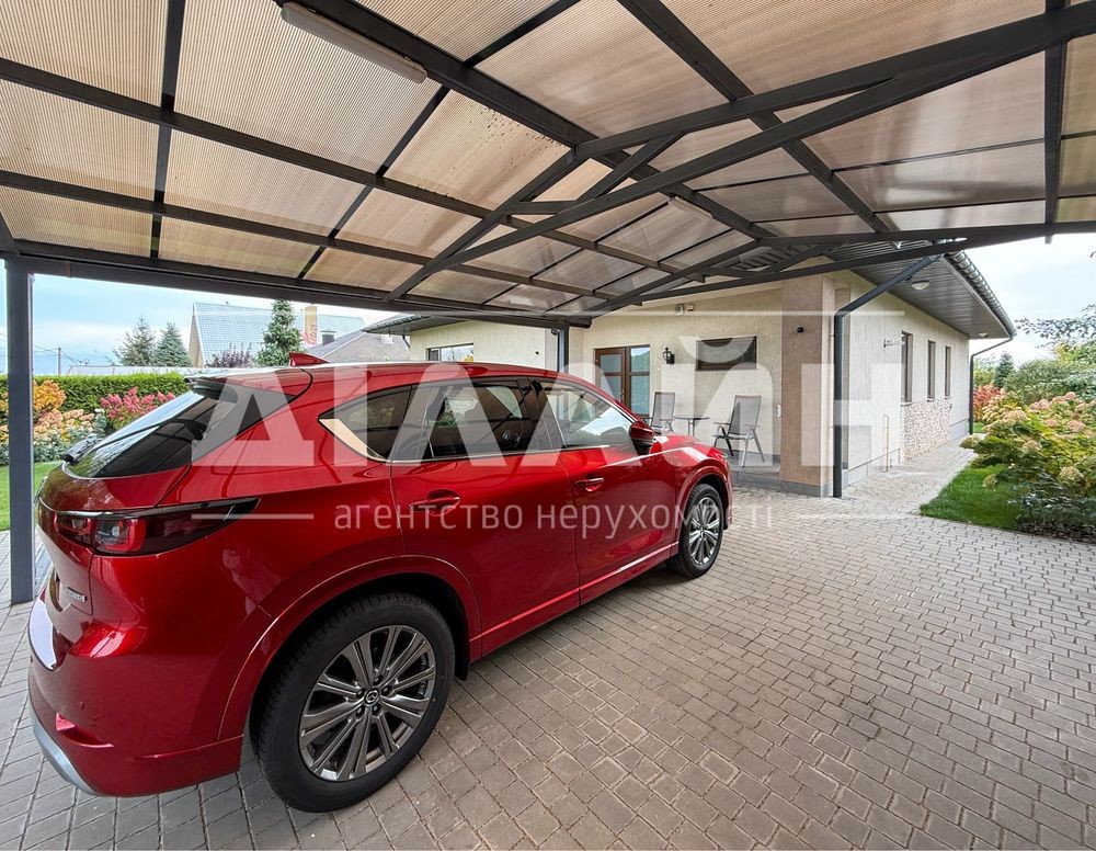 На території облаштована крита тераса та зона відпочинку, є навіс на два автомобілі.