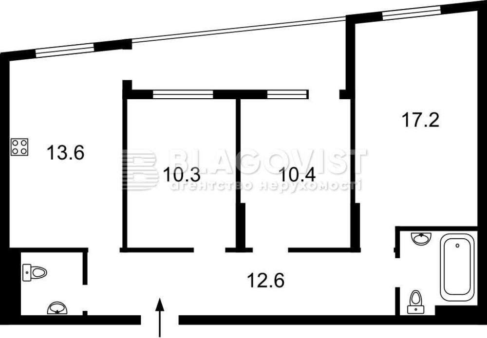 • 3-х кімнатна квартира, 2-й поверх, площа: 74,4\38,0\13,6;