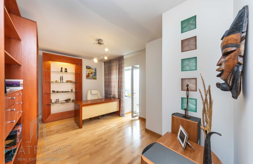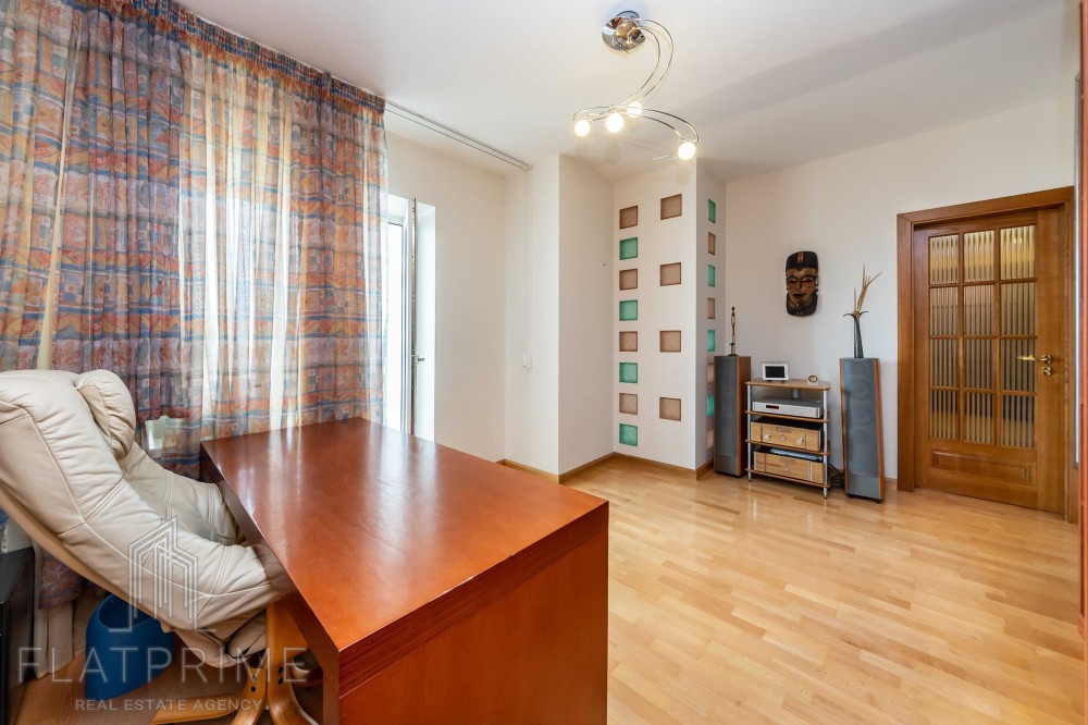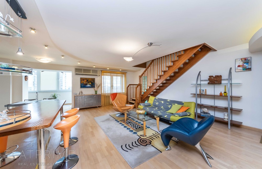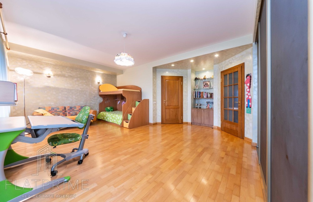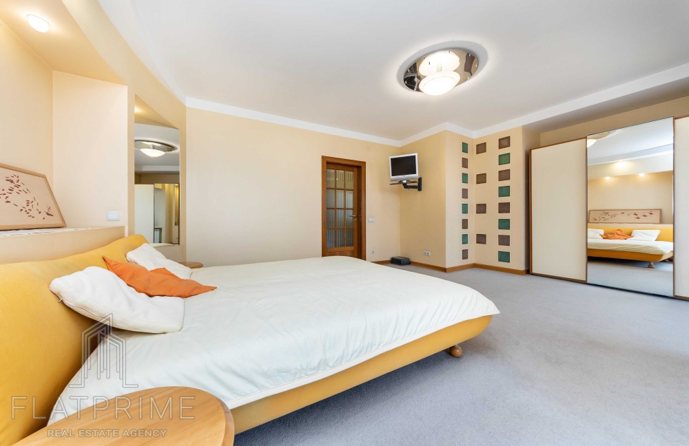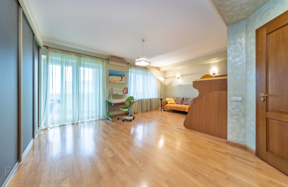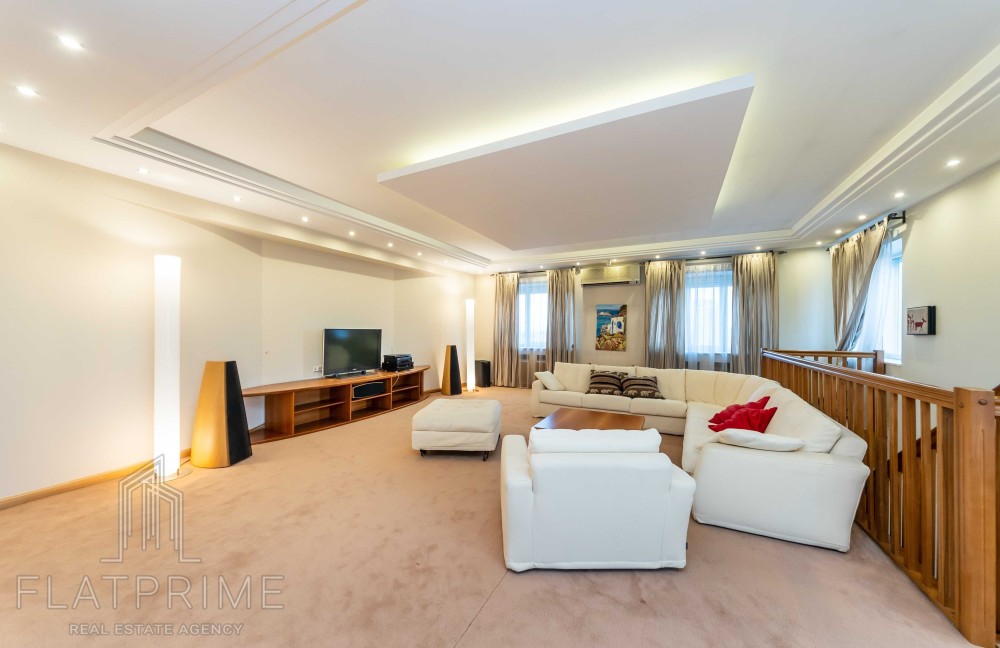 Загальна площа квартири складає 237 м2 + тераса. Авторський ремонт. Велика, світла, простора кухня-студія 60 м2, 2 спальні, кабінет, кінозал з каміном, два санвузли, сауна, дві лоджії, велика тераса на даху з власним виходом - чудовий вид. Максимальний комплект меблів та техніки.