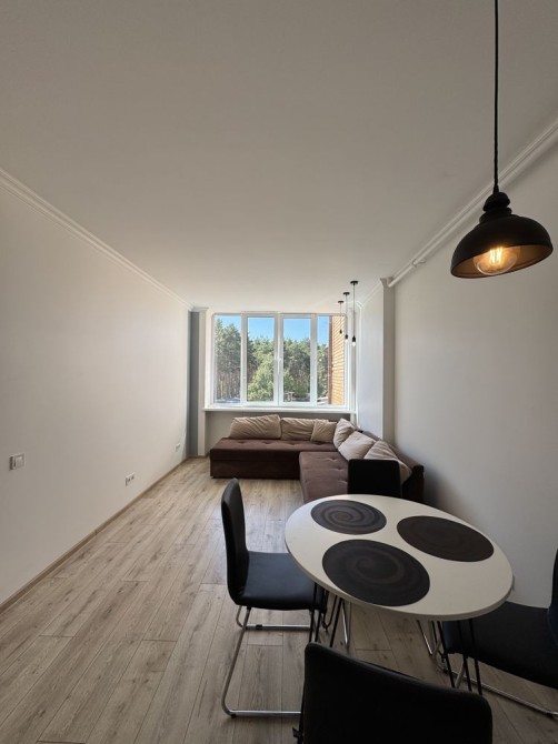 В квартирі велика та світла кухня-вітальня площею 23 м2: кухня встановлена, укомплектована необхідною технікою. Також на кухні є великий диван.