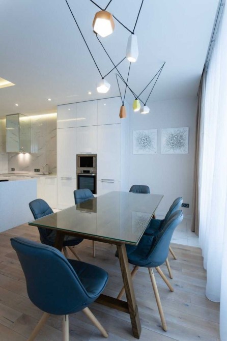 Виконано авторський дизайнерський ремонт із застосуванням високоякісних матеріалів. Сантехніка "Villeroy Boch". Квартира укомплектована меблями та побутовою технікою, встановлені кондиціонери, підлога з підігрівом. Функціонує Інтернет. Планувальне рішення: вітальня, кухня-їдальня, спальня, спальня-кабінет, 2 с/в (гостьовий з душовою кабіною та Master, з ванною та душовою кабіною), пральна, 2 вбиральні кімнати. Чудово розвинена інфраструктура району.