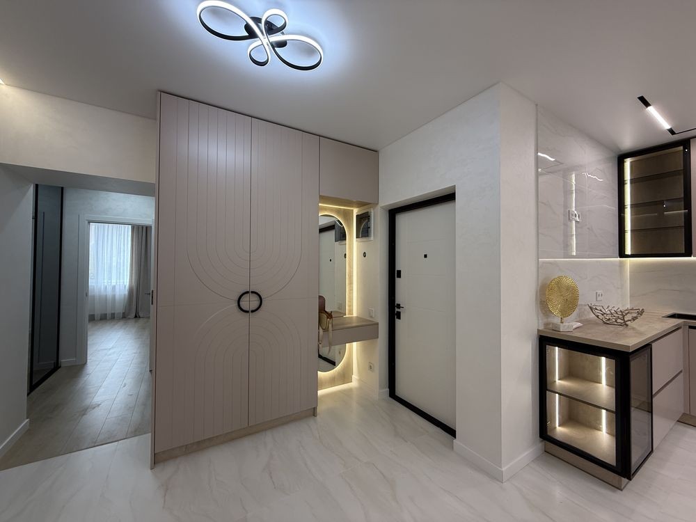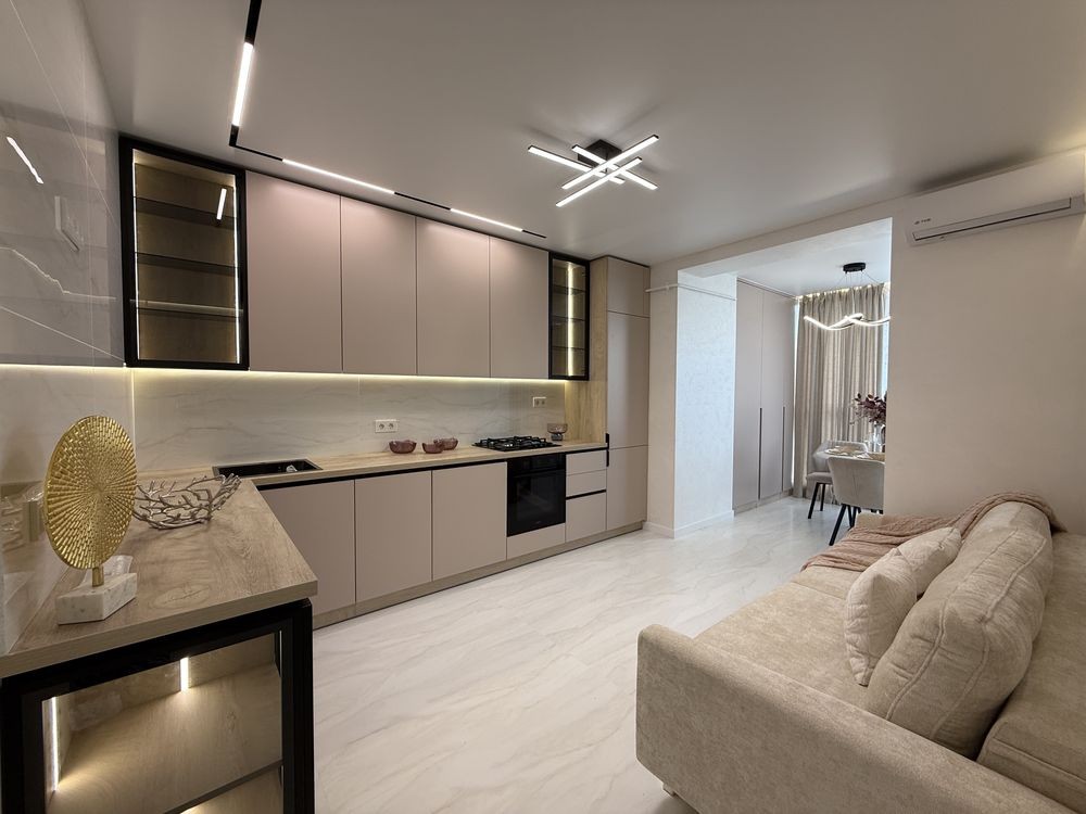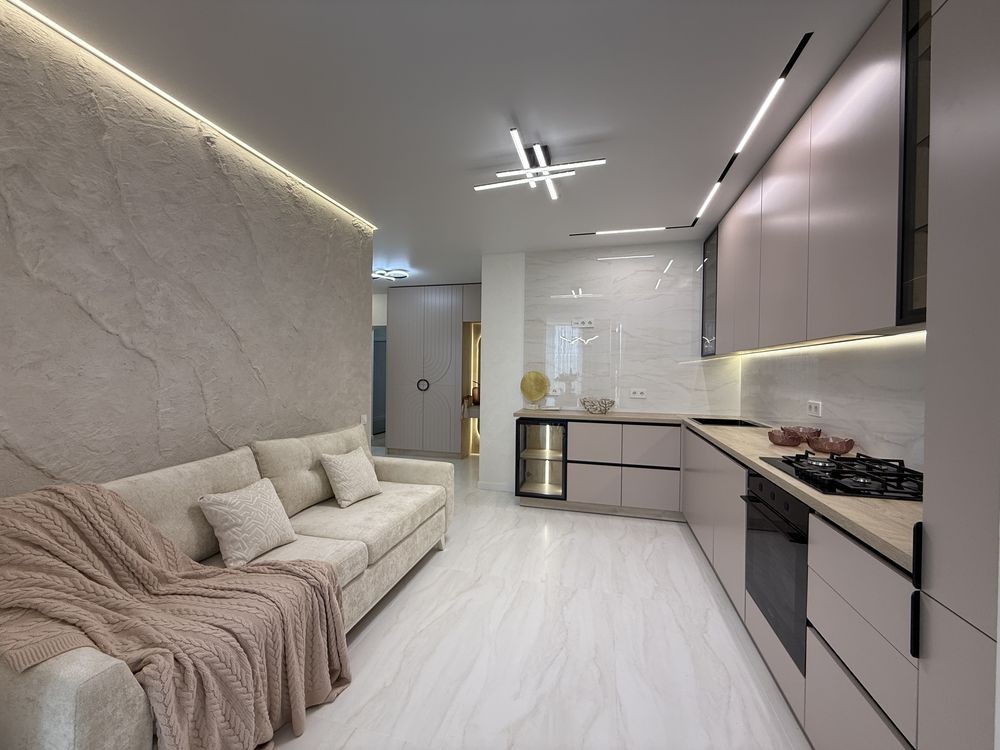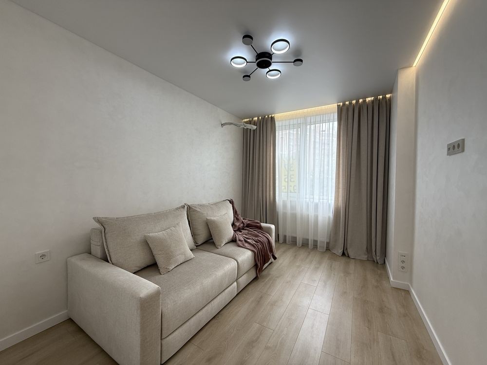 Просторий хол з великою шафою. Кухня вітальня де Ви з задоволенням будете готувати сніданок та вечеряти в колі сімʼї та друзів. На лоджії обідня група та кладова. Гостьовий диван. Спальня зі зручним ліжком та місткою шафою. Гардеробна кімната, щоб Ваші речі були задоволені. Друга кімната вільного призначення але є зручний диван. Санвузол по фен шую. Тепла підлога по кафелю. Кондиціонер. Індивідуальне опалення та лічильники, двухконтурний газовий котел.