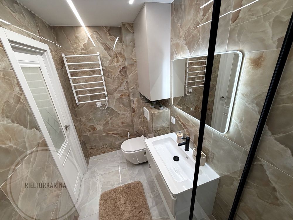 Тепла підлога у ванній кімнаті, ламінат по всій квартирі, натяжні стелі, меблі під замовлення, техніка нова, на гарантії. Є пральна машина на 6 кг, бойлер на 100 літрів, , холодильник , витяжка, витяжка у ванній, духова шафа, плазмений телевізор 55 діагональ , та розкладний диван.