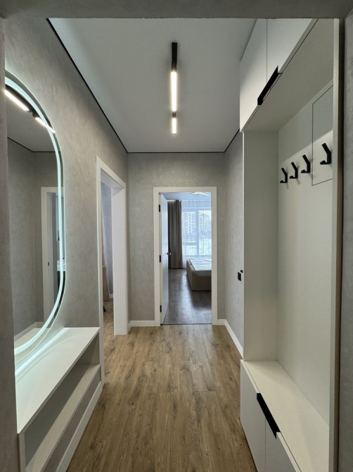 Продумане планування: простора кухня з виходом на відкритий балкон-терасу, окрема спальня, зручний коридор із дзеркалом та прихожою, сумісний санвузол. Багато місць для зберігання — квартира справді «розумна».