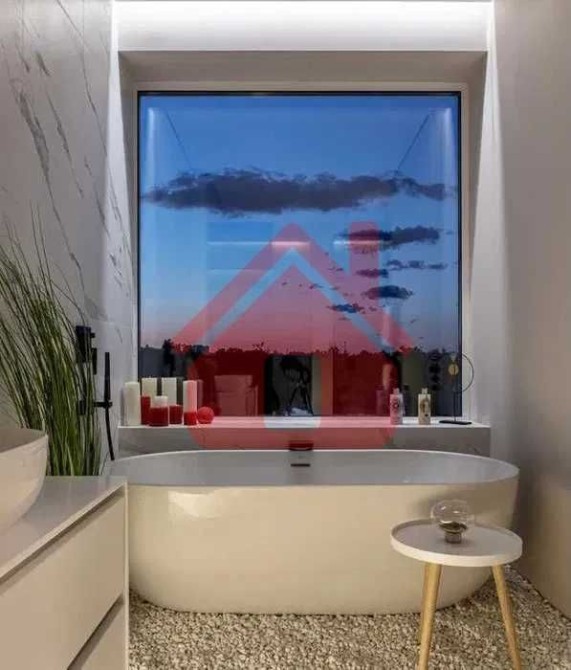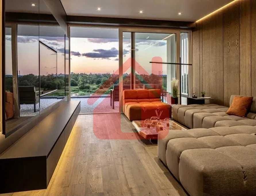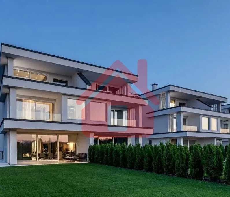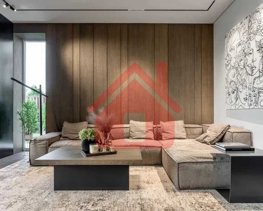 Дома дуплексы 350м2 с ремонтом и мебелью премиум-класса, выполнены из высококачественных материалов в ультрасовременном дизайне из натуральных материалов. 1-й этаж — прихожая, большая гардеробная, просторная гостиная с двухсторонним камином, столовая зона с панорамным окном и выходом на террасу, кухня, гостевой с/у; 2-й этаж - две спальни, два с/у, хозяйская спальня со своим с/у и двумя гардеробными; 3-й этаж - лаунж-зона, комната отдыха, выход на террасу с джакузи, сауна, с/у, бытовая комната укомплектованная стеллажами, стиральной и сушильной машиной Samsung. Полы с подогревом, котел Wiesmann; система Умный дом; Алюминиевые витражные окна; система двойной водоочистки; сантехника Hansgrohe, Grohe, Geberit, Devit; кухня Rait с фасадами из натурального дубового шпона, столешница - мрамор, техника Miele, Liebherr; мягкая мебель Bonaldo, двери Elio. Настенные панели - натуральный дубовый шпон. Участок 5 соток, высажен травой и туями, оборудован автополивом.
