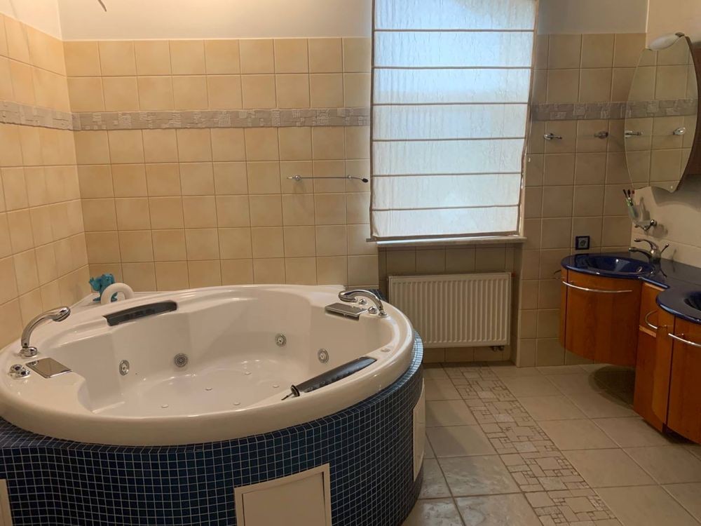Пропонується в оренду на тривалий період розкішний будинок у Кончі Заспі. Просторі кімнати, санвузли, басейн, бібліотека, зона барбекю. Ціна 3000 дол мінім, оренда не менше року, інакше депозит не повертаємо, 20 соток землі, 5 окремих кімнат плюс хол вітальня на 1 пов (без урахування кінотеатру та спорт залу в цоколі), 4 санвузли-докладно: на 1 пов 2 санвузли. Найближча річка Козинка (150 метрів) з пляжем-пішки і поряд з будинком затока від річки 20 метрів-тільки для риболовлі, локація Козин. Послуги садрвника (1300 грн зміна), обслуговування басейну (закупівля хімії, очищення води) за рахунок орендаря, а глобальні речі за рахунок наш.