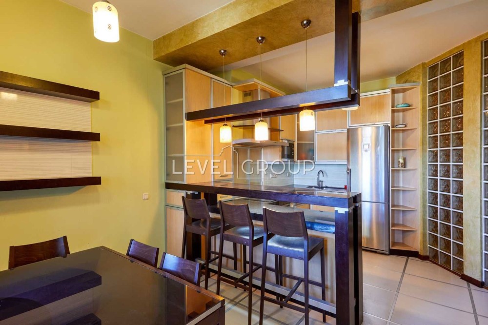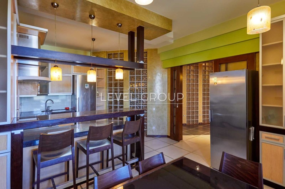 Виконано якісний ремонт, меблі львівського дизайнера виконані під замовлення. Натуральний паркет Палісандр та Мербау (деревина декількох порід тропічних дерев роду Інтсія (Intsia), що ростуть у Південно-Східній Азії та Океанії).