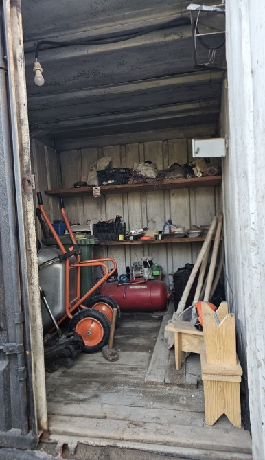 Не гнилий, дах не протікає, двері зачиняються. В середині є світло і розетка. Чудово підходить для будівництва.