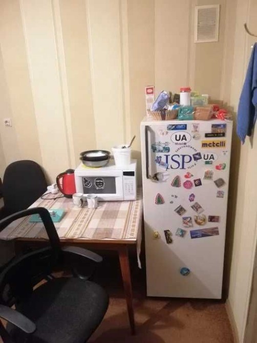 У кімнаті є мікрохвильова піч, холодильник, пилосос, пральна машина, праска, LED телевізор, інтернет і тв, комплект посуду. Спальне місце розкладний 2спальний диван, є стіл та стільці, комора для зберігання речей. Ззовні кімната утеплена, низькі комунальні взимку.